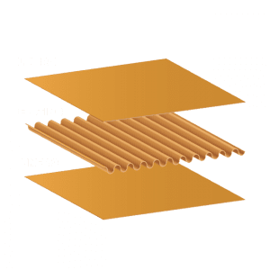 A multi-layered cardboard with a wavy inner layer (fluting) for making